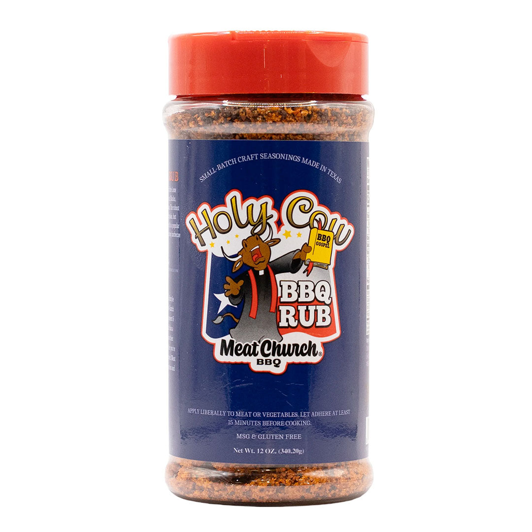 Holy Cow by Meat Church is the bold, beefy BBQ rub that captures the unmistakable flavor of authentic Texas barbecue. Created by pitmaster Matt Pittman, this seasoning was made for brisket, tri-tip, and steaks but shines just as bright on burgers, chicken, and more. With its perfect balance of salt, garlic, and spices, Holy Cow delivers that classic Central Texas taste reminiscent of legendary smokehouses like Franklin, Kreuz, and Smitty’s.