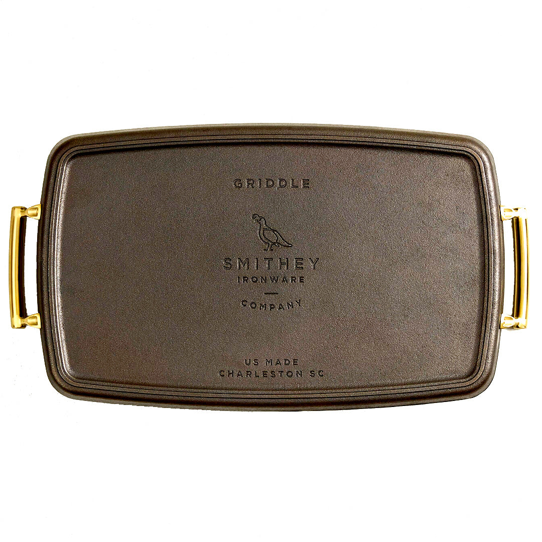 Smithey Ironware crafts premium cast iron cookware that blends timeless design with modern performance, and their Double Burner Griddle is a testament to that commitment. Designed to span two stovetop burners, this handcrafted cast iron griddle offers a spacious cooking surface ideal for preparing breakfast spreads, searing meats, or making multiple meals at once. Thoughtfully engineered with drip channels to manage excess oil and golden stainless steel handles for a secure, balanced grip, this piece brings restaurant-grade functionality into the home kitchen.