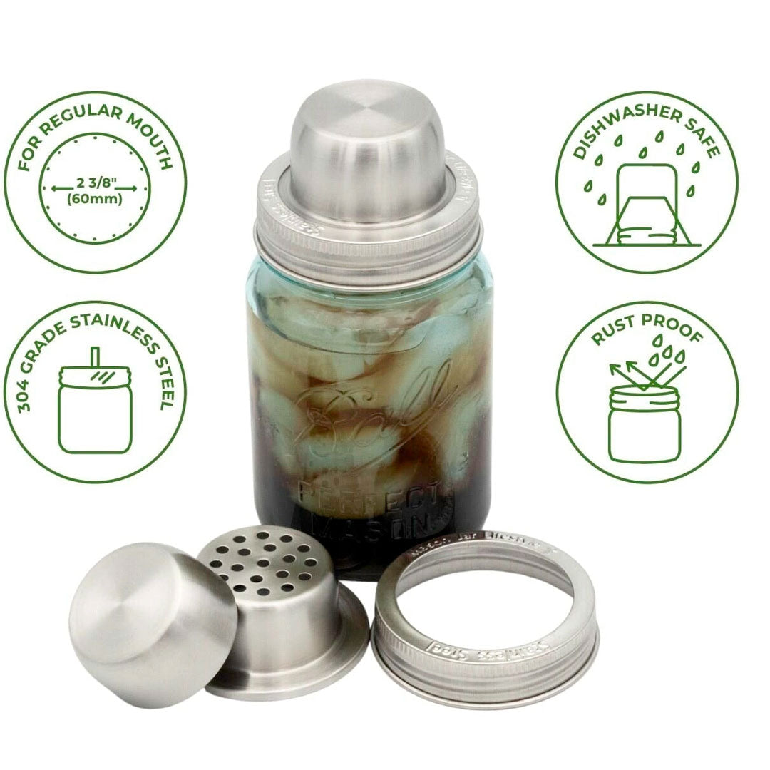Shake, pour, and serve with style using the Mason Jar Lifestyle Mason Shaker Cocktail Shaker Lid. Designed to fit Regular Mouth Mason jars, this sleek stainless steel lid transforms your everyday jar into a professional-quality cocktail shaker—perfect for home bartenders, mixologists, and party hosts alike.